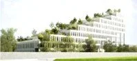 There are a number of other options for reducing the visual impact of a building like stair-stepping floors with plantings on the roof of each lower level as shown in the illustration to the right. As stated above, earth berms or other measures should be considered if trees and other vegetation alone cannot completely block the view of a data center building from the view of area residents. By the way, trees and other vegetation are not very effective at blocking data center noise.