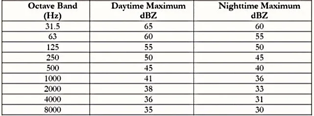 Table 1: Recommended Octave Band Sound Pressure Levels for Residential Zoning District