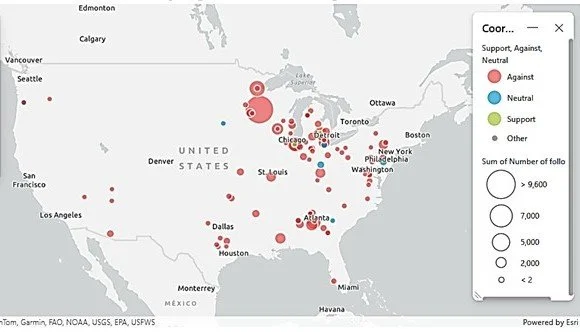 * Note: This map will eventually be interactive; currently, you can see the location, the size of followers, and Support, Against, or Neutral (color). You may find additional information in the full download below the map.